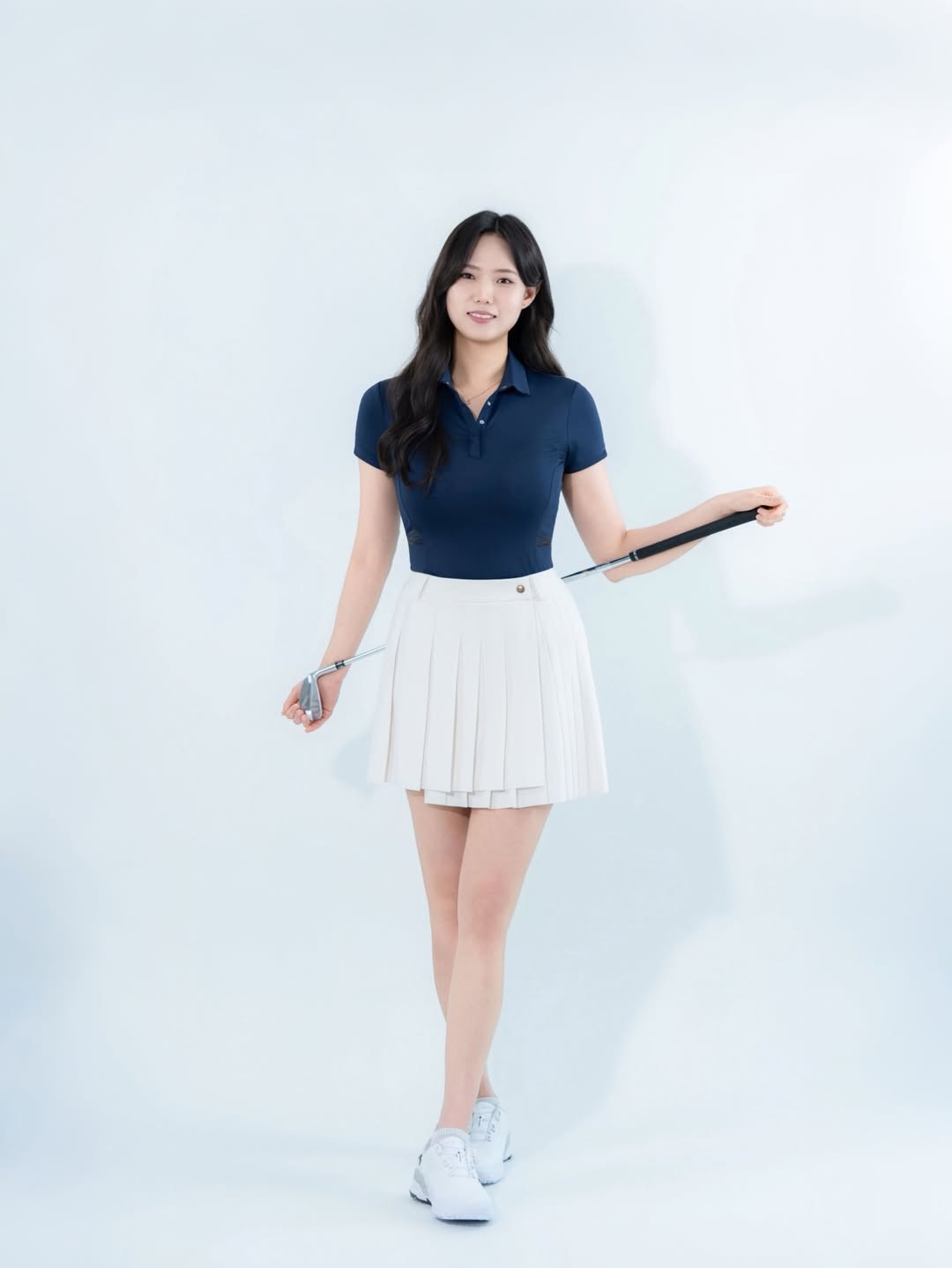 유수현 프로는 골프 실력만큼이나 뛰어난 패션 감각으로도 유명합니다. 화이트, 블랙 등 심플하면서도 고급스러운 골프 웨어를 주로 착용하며, 그녀의 긴 팔다리는 어떤 옷이든 최고의 핏으로 만들어냅니다.
